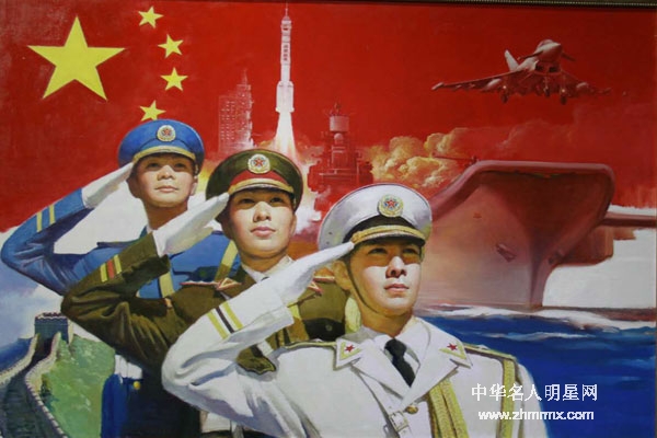 强大的中国人民解放军陆海空三军将士坚决听从习近平为核心的党中央指挥(油画桑全利摄于中共中央直属机关书画摄影展)