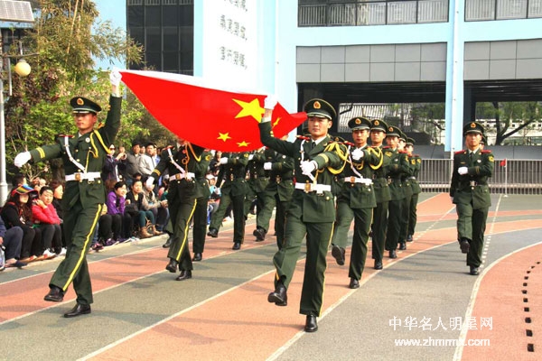 国威!军威!新华社武警中队国旗班战士为北京西城区受水河小学运动会举行庄严升国旗仪式。(桑全利摄影)