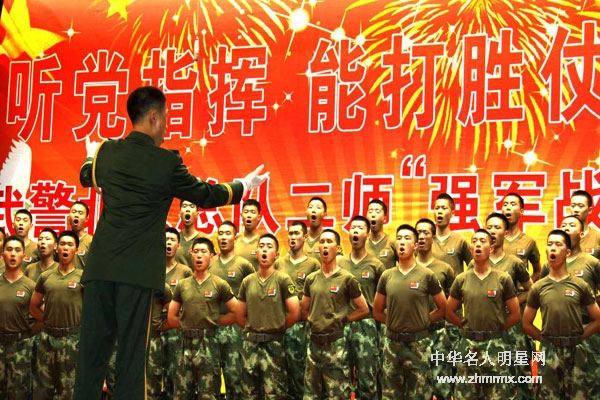 听党指挥,能打胜仗!武警北京总队二师战士引吭高歌《听党指挥能打胜仗》(桑全利摄于新华社礼堂)