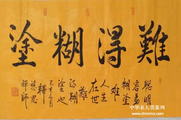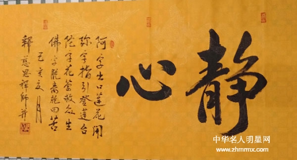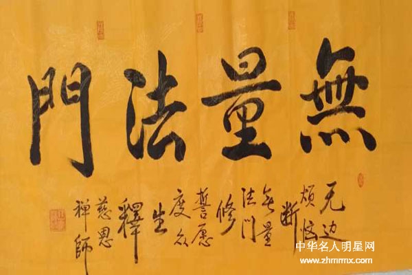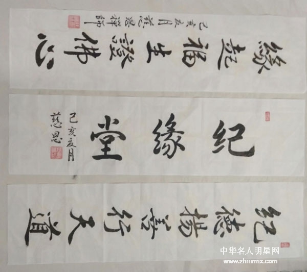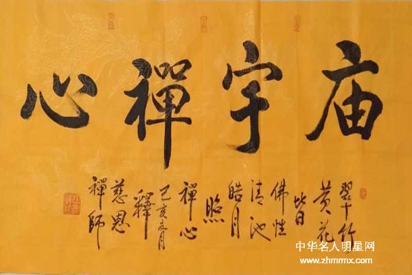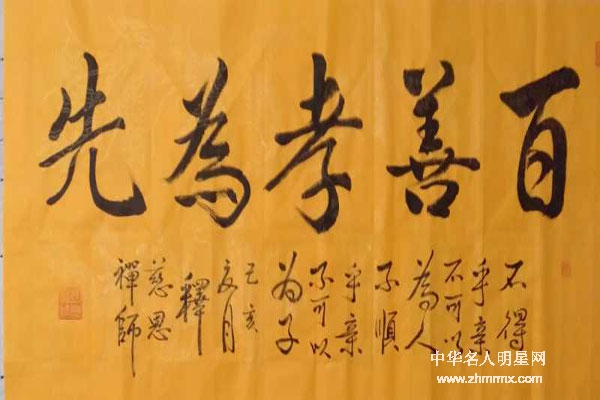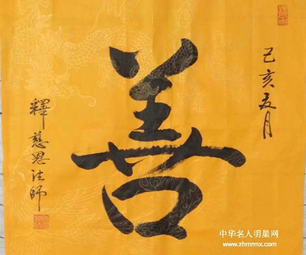 慈恩法师幼年出家,精心专研佛经,休闲时间爱好书法,每天必修佛字以悟其心。慈恩法师祖籍,自幼聪慧,睿智天成,少时即怀善心,能显慈悲,年方七岁,执意茹素。十一岁时投惠来普善岩出家,幼而事佛,经禅文暇,颇喜笔翰。”他勤学苦练的精神是十分惊人的,现时经常走访普陀山、五台山、峨眉山、九华山。探讨讲解与之相对应的四大菩萨。普陀山是观世音菩萨的道场;五台山是文殊菩萨道场;峨眉山市普贤菩萨道场;九华山市地藏菩萨道场。在这些道场和佛学大师深刻研究、探讨四大菩萨的精髓。近几年更是把全部精力都投入到讲经、说法的公益事业当中。慈恩大和尚不当精通各种经书对于讲经说法更有自己独到之处,慈恩法师书法得到业内人士的一直好评,他修心之际以佛学字画与有缘人交流。